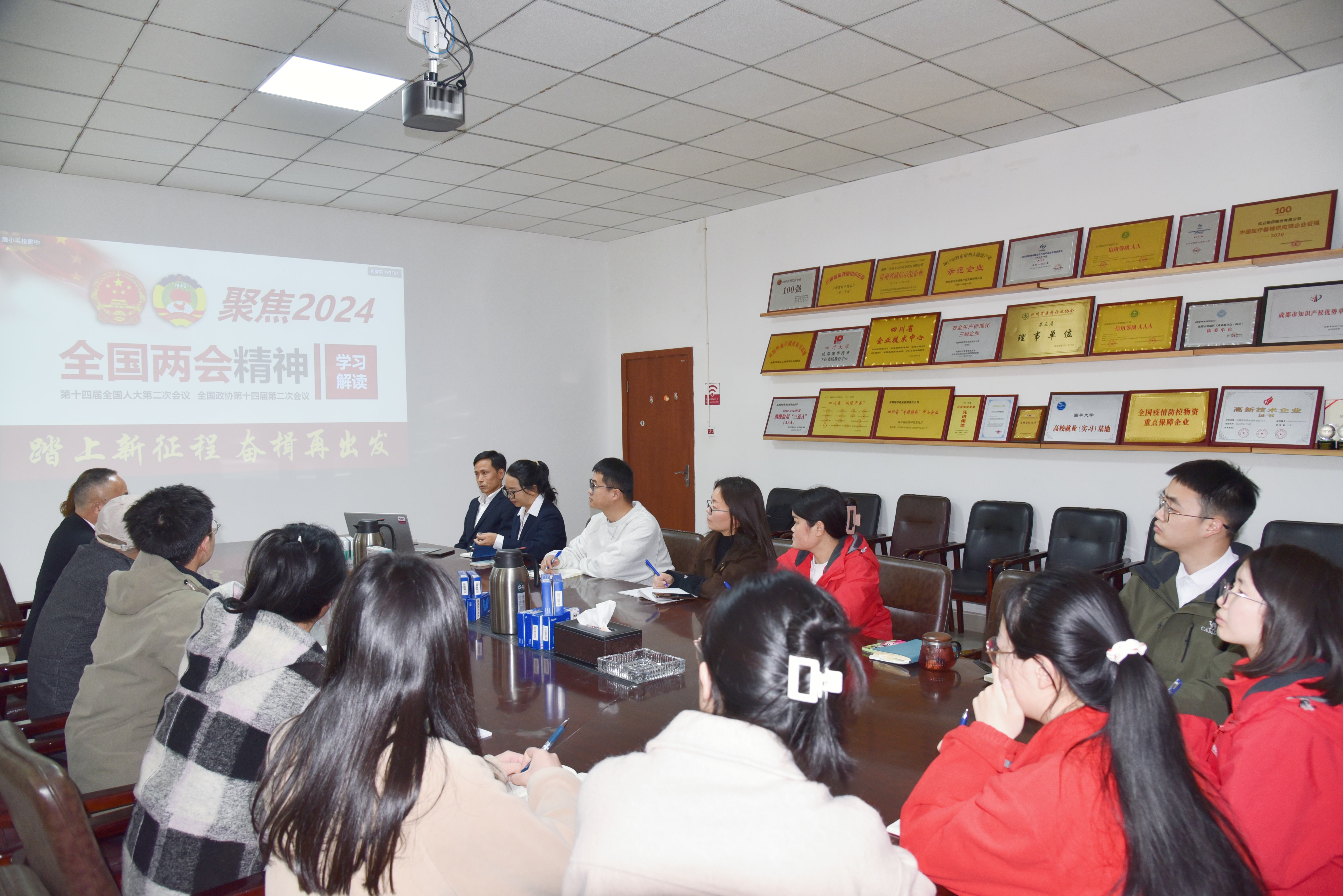 會議中,各位黨員同志深入學習、討論了兩會中提出的新概念、新詞匯——發(fā)展新質(zhì)生產(chǎn)力、提升新興領(lǐng)域戰(zhàn)略能力、深化改革等重要內(nèi)容。尤其特別關(guān)注了關(guān)于醫(yī)藥行業(yè)的政策導(dǎo)向和發(fā)展趨勢,大家一致認為,全國兩會不僅為國家發(fā)展指明了方向,也為公司未來的發(fā)展提供了重要指導(dǎo)。