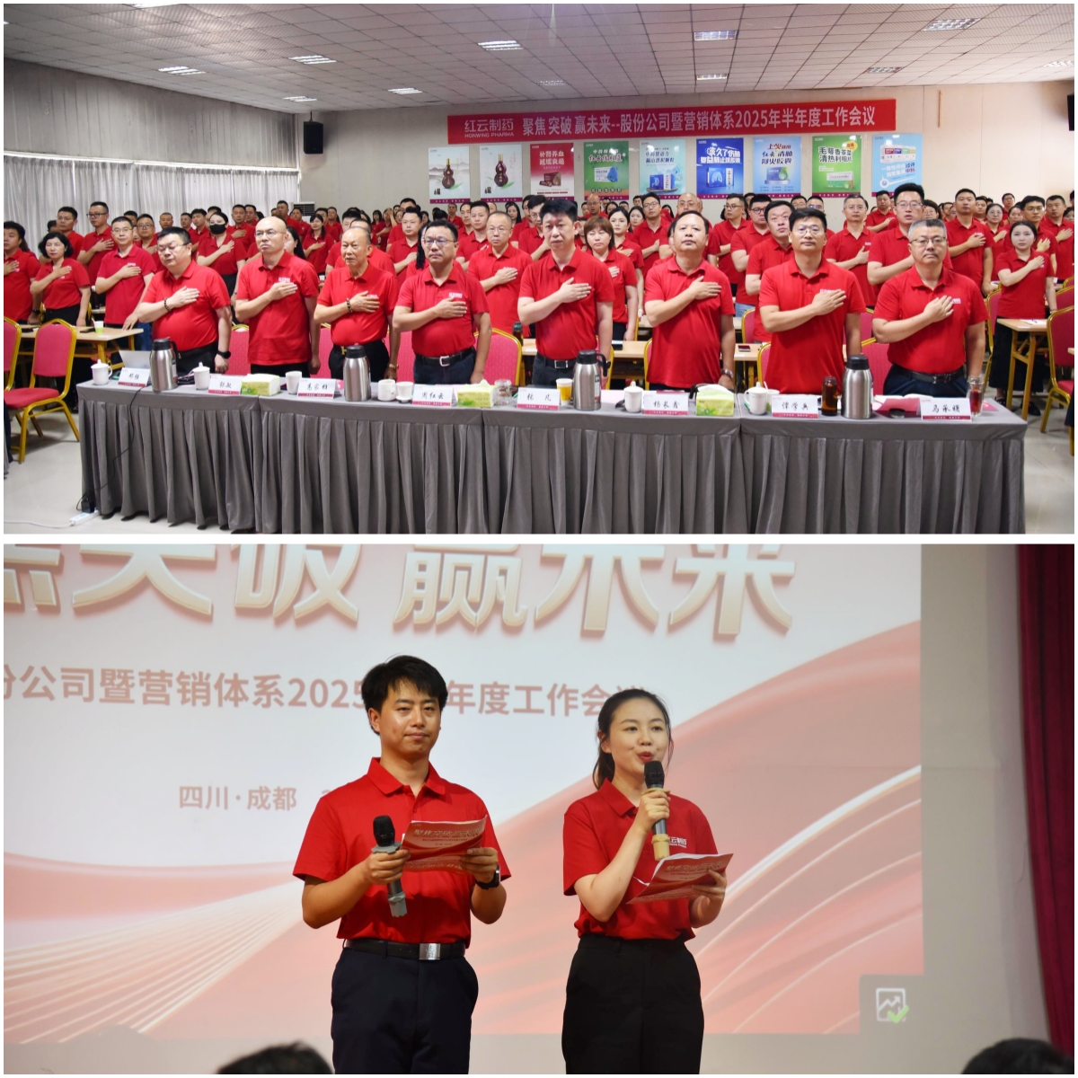 盛夏蓉城,生機(jī)盎然。7月12日,以“聚焦 突破 贏未來”為主題 的紅云制藥股份公司暨營銷體系2025年半年度工作會(huì)議圓滿召開。270多名來自各事業(yè)部、工廠及后臺(tái)部門的管理人員,通過線上線下方式出席會(huì)議,共同回顧上半年奮斗足跡,描繪下半年發(fā)展藍(lán)圖,為決勝全年目標(biāo)凝聚磅礴力量,吹響奮進(jìn)號(hào)角。